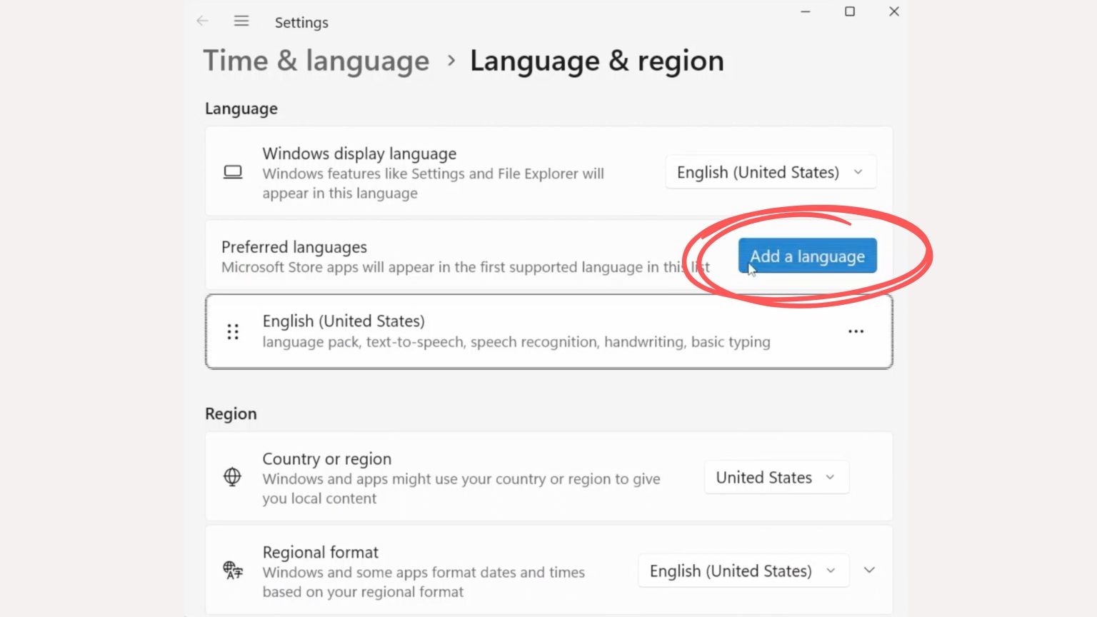 From the Start menu (typically bottom left corner or bottom middle of the screen), search for “Language” in order to find Edit language and keyboard options.